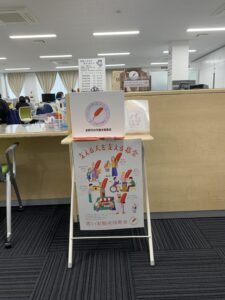 今年も、「赤い羽根共同募金・歳末助け合い募金」に係る募金箱を設置しております。